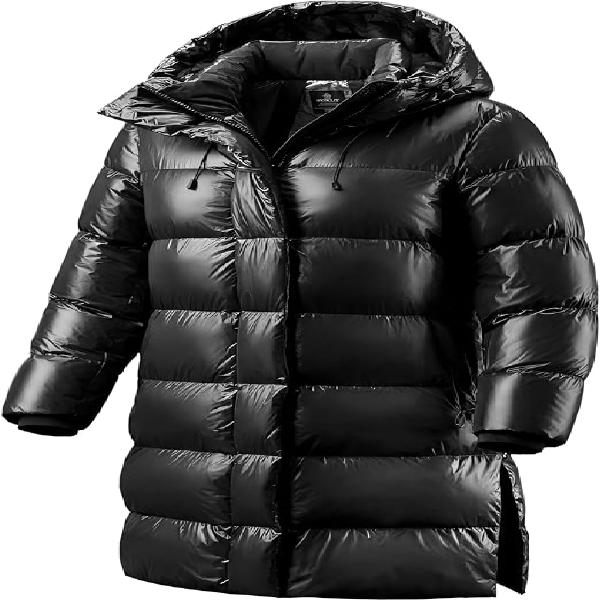 表面经压光处理后呈现均匀的亮泽或微哑光质感,观感高级、现代且富有科技感,明显区别于传统羽绒服面料的朴素外观。