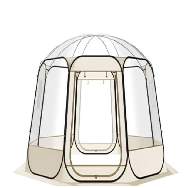 | 2. 极致的全景观与通透体验 | 采用全透明或高透明TPU薄膜,提供无与伦比的360度全景视野,将户外景观与居住空间融为一体,创造独特的沉浸式露营体验。 | 定义了泡泡帐篷区别于传统帐篷的核心卖点与产品灵魂,满足了消费者对“亲近自然、仰望星空”的情感与美学需求,是创造高附加值体验的关键。 |