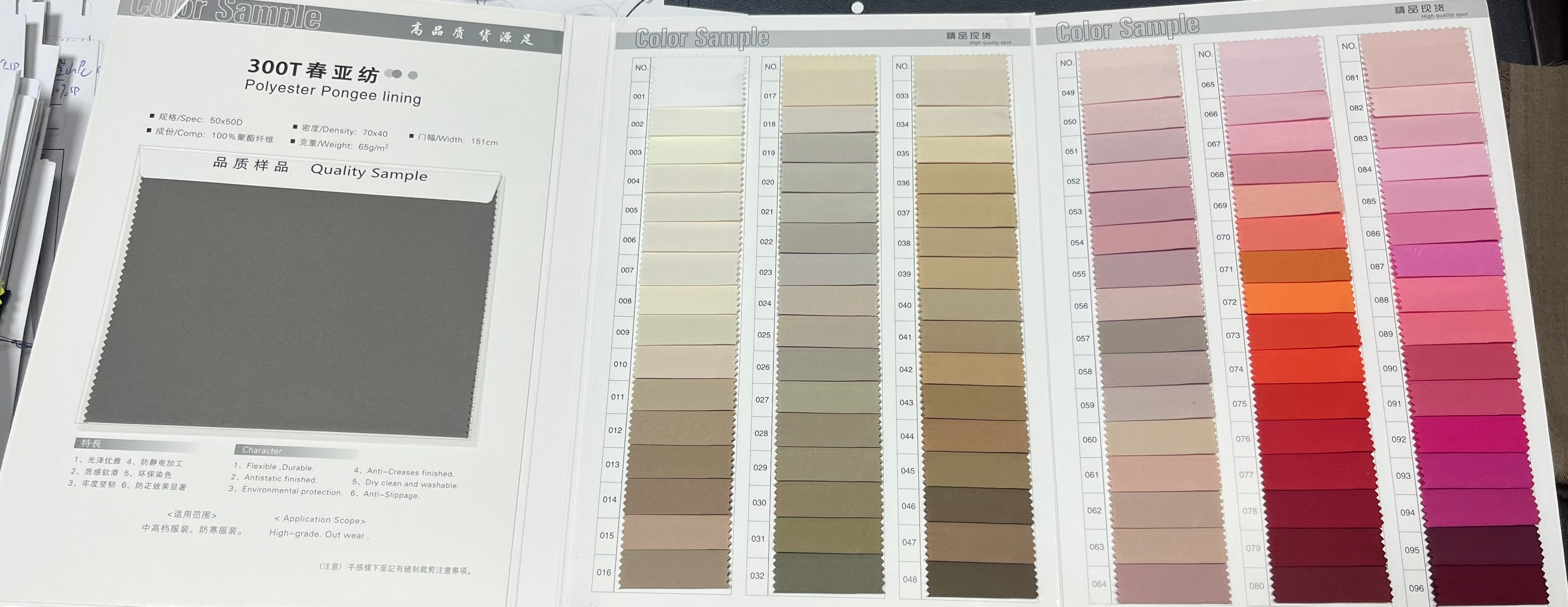 300T春亚纺1200色现货,采用高密度织造,布面细腻平滑、手感柔软,质地轻盈且耐磨抗皱、尺寸稳定,色牢度高、久洗不易褪色。